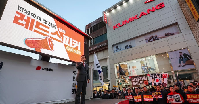 장 대표는 이날 오후 대전에서 민생회복 법치수호 국민대회를 열어 “정치보복과 국민탄압, 이재명 방탄에만 올인하면서 민생을 벼랑 끝으로 내몰고 있는 이재명 정권이 위기의 본질이자 만악의 근원”이라며 이같이 말했다.