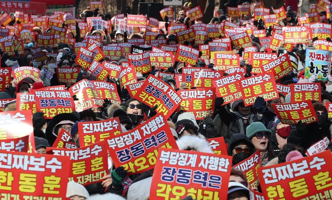 한 전 대표 지지자들은 ‘진짜보수 한동훈 우리가 지킨다’, ‘부당징계 자행한 장동혁은 각오하라’ 등의 피켓을 들고 한동훈을 연호했다. 한 전 대표는 참석하지 않았지만 김종혁 전 최고위원 등 친한계 인사뿐만 아니라 보수논객인 조갑제 조갑제닷컴 대표 등도 참석했다.