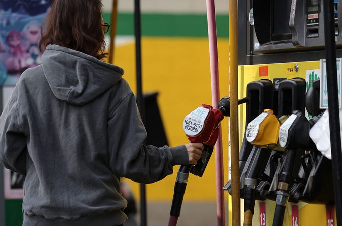 미국과 이스라엘의 이란 공습으로 이란 최고지도자인 아야톨라 세예드 알리 하메네이가 사망했다는 공식 보도가 이어지면서 국제 유가가 급등할 가능성이 제기된 1일 서울 시내 주유소에서 한 시민이 주유기를 들고 있다.[뉴시스]