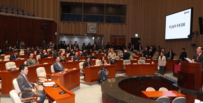 국민의힘은 9일 열린 의원총회에서 소속 의원 전원 명의의 결의문을 발표하고 “윤석열 전 대통령의 정치적 복귀를 요구하는 일체의 주장에 명확히 반대한다”고 했다.