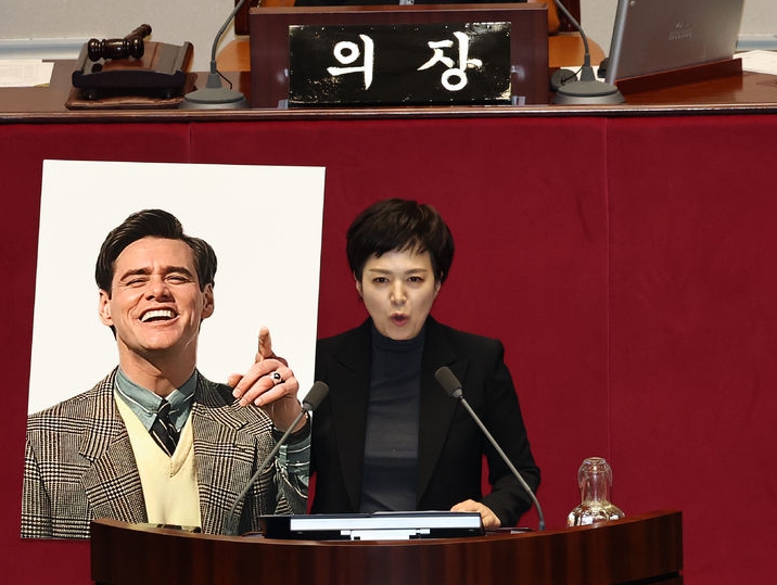 10일 국회 본회의에 상정된 추가경정예산안(추경)은 여야 합의로 통과됐지만 반대토론도 있었다. 그 과정에서 영화배우 ‘짐 캐리’ 사진이 등장하면서 소란이 일기도 했다.