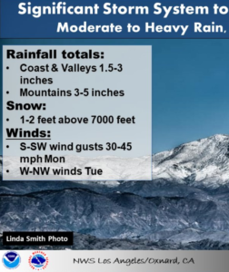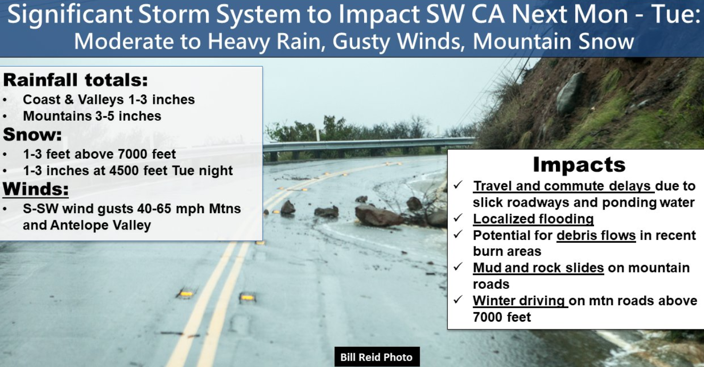 새크라멘토의 국립기상청 애나 웬리스 기상통보관은 “이번 폭풍우는 상당히 길어질 것이며, 캘리포니아 대부분 지역에 눈이나 비가 이어질 것”이라고 말했다.