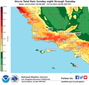 LA 지역은 이날부터 곳에 따라 비가 내리고 화요일인 14일에는 전역에 비가 내릴 것으로 예상된다.
