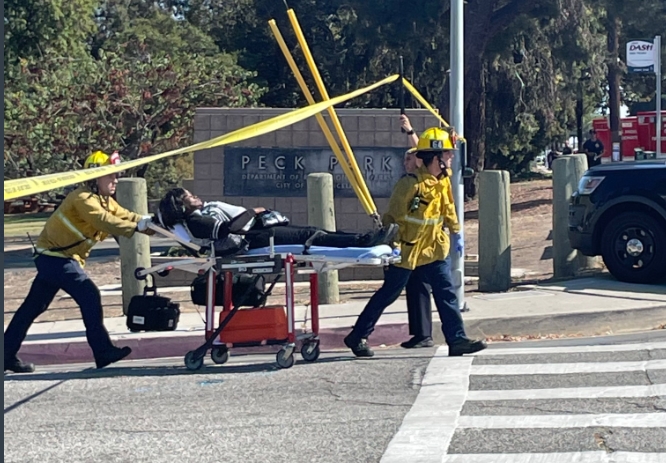 I'm at Peck Park in San Pedro, where multiple victims — I counted seven — were taken away by ambulance after gunfire erupted at a car show. #BreakingNews pic.twitter.com/xQwTEHaJie