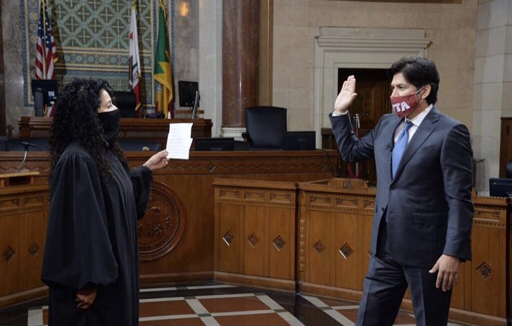 케빈 드레온 LA 시의원 취임 선서를 하고 있다[ 드레온 홈페이지]