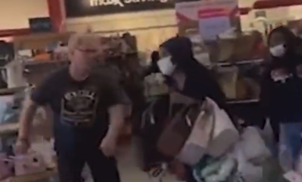TJ맥스 매장에서 물건을 훔쳐 나가던 여성을 한 남성 고객이 주먹으로 제지하고 있다. Asian Crime Report@activeasian ·