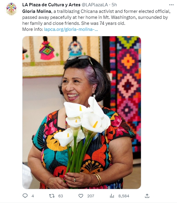 LA 여성 정치의 선구자로 알려진 글로리아 몰리나 전 LA 카운티 수퍼바이저가 향년 74세로 별세했다.