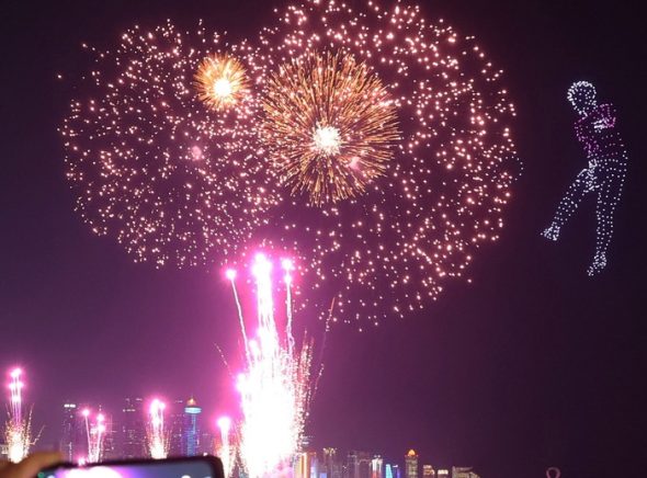 20일 오후(현지시간) 카타르 도하 코르니쉬 거리에서 2022 카타르 월드컵이 개막을 축하하는 불꽃쇼가 진행되고 있다. 2022.11.21.