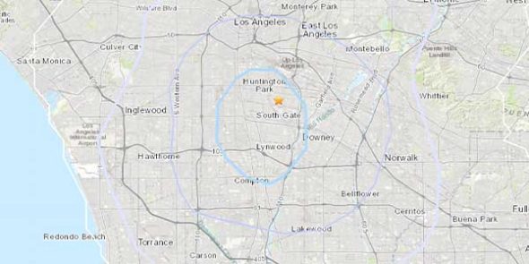 지질조사국은 18일 오후 9시 40분 경 LA카운티 벨(Bell) 지역에서 서쪽으로 0.4 마일 떨어진 곳에서 진도 3.0의 지진이 발생했다고 밝혔다.