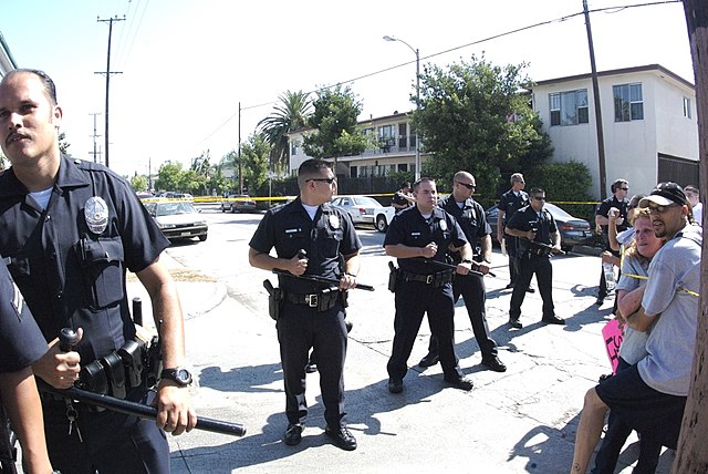 범죄현장에 출동한 LA경관들[사진 위키미디어 커먼스]