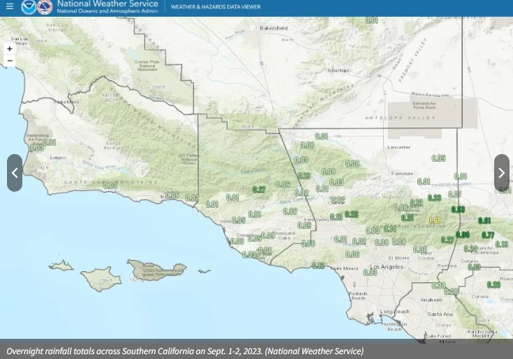 기상당국은 이번 비가  캘리포니아 해안 지역에 넓게 분포한 해야 저기압대가 몬순 습기를 끌어들인 상태에서 남가주 지역을 통과하면서 내리는 것이라고 설명했다.