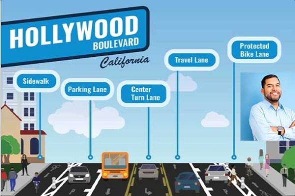 마르티네즈 시의원의 ‘헐리우드 접근’ 계획은 웨스트 헐리우드 경계인 라 브레아 애비뉴부터 실버레이크 파운틴 애비뉴까지 이어지는 헐리우드 블루버드를 따라 자전거 도로를 도입하고, 버스 차선도 도입해 대중 교통의 효율성과 안정성을 개선한다는 계획이다. 또 중앙 차선을 만들어 회전으로 인한 지연시간을 완화하고 비상 대응 시간을 단축할 예정이다.
