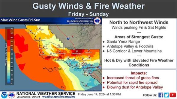 특히 앤텔로프 밸리 계곡에서도 먼지가 날리면서 큰 위험이 될 것으로 예상됐다.