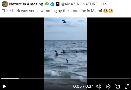 마이애미 해변에서 23일 상어가 목격됐다[@AMAZlNGNATURE·This shark was seen swimming by the shoreline in Miami