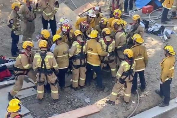 로스 펠리즈 지역의 한 공사장에서 배수구에 매몰됐던 근로자가 구조됐다.