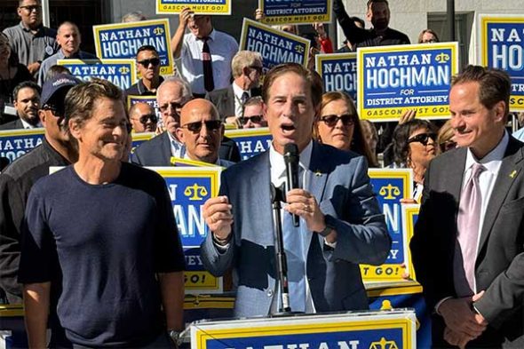 선거운동을 하고 있는 네이선 호크먼 LA 카운티 검사장 후보. 네이선 호크먼 선거캠프