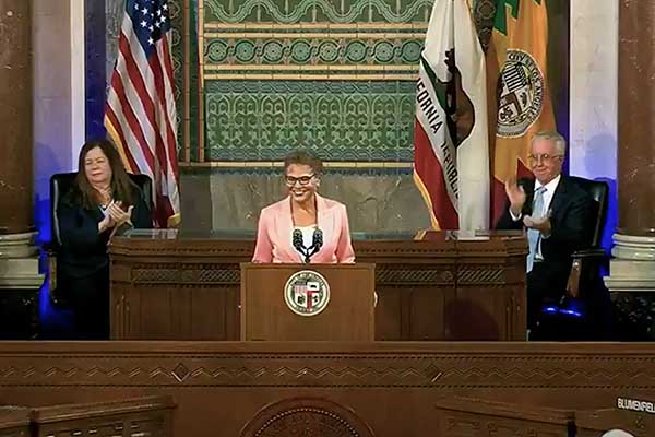 캐런 배스 LA 시장이 시의회에서 연설하고 있다. LA 시장실