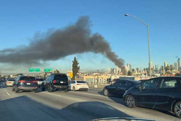 아침 출근길이었던 주민들은 프리웨이에서 부터 검은 연기가 하늘로 치솟는 모습을 목격한 것으로 확인됐다.