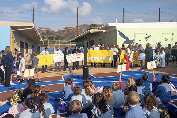 마르케즈 차터 초등학교 교사 및 교직원들이 학생들의 복귀를 환영하고 있다. X@LAUSDSup