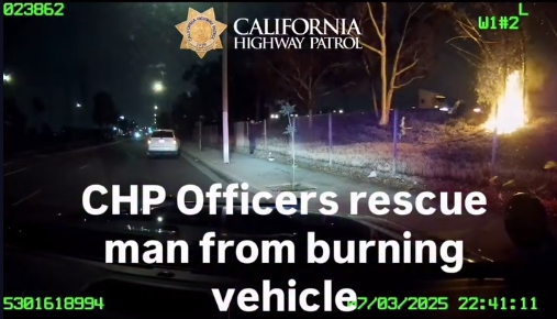 CHP 경관들, 불타는 차량서 운전자 구조 … 목숨 건 현장(영상)