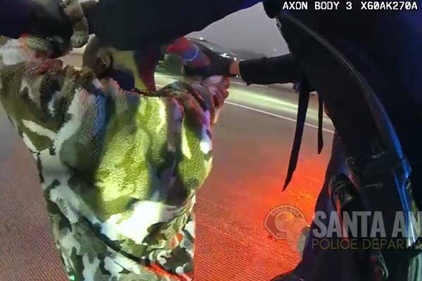 샌타아나에서 49세 남성 케냐타 데숀 해리스가 경찰관을 치려 한 혐의로 11일 체포됐다.