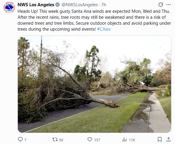 최신 기상 정보는 NWS 공식 홈페이지에서 확인할 수 있으며, 관련 문의는 nws.losangeles@noaa.gov