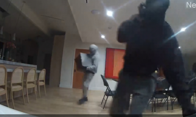 벨에어 주택 내부 CCTV에 포착된 복면 절도단이 금고와 귀중품을 챙겨 빠르게 도주하고 있다. 사진 제공: 주택 소유주 via KTLA
