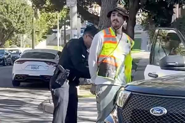 People’s Vision Zero 소속 활동가 조나단 헤일은 지난 7일(일), 동료들과 함께 웨스트우드 한 교차로에서 횡단보도를 그리던 중 체포됐다. 소셜미디어에 공개된 영상에 따르면 이미 두 개의 횡단보도가 완성됐고 세 번째를 작업하던 중 LAPD 경관이 도착해 헤일에게 수갑을 채웠다.