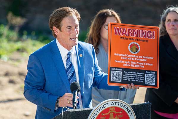 네이선 호크만 LA 카운티 검사장이 무면허 건축업자와 관련해 경고하고 있다. 캐서린 바거 수퍼바이저 페이스북