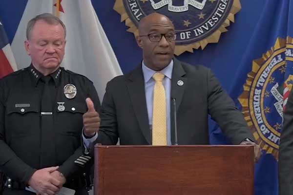 FBI LA 지부의 아킬 데이비스가 기자회견을 통해 테러 음모 저지에 대해 발언하고 있다. FBI