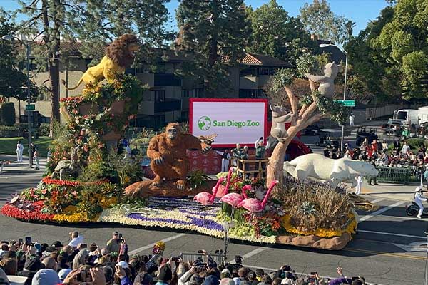 제135회 로즈 퍼레이드 최고의 꽃차로 선정된 샌디에이고 동물원의 꽃차. 샌디에이고 동물원 X