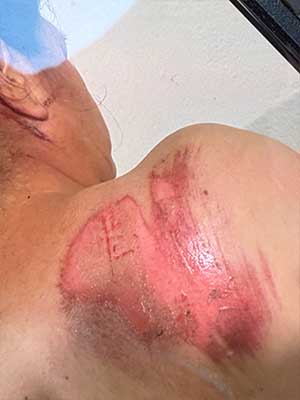 우에르타는 머리를 크게 다쳐 스테이플 봉합을 해야 했고, 거리로 끌려가면서 등에도 큰 찰과상을 입었다.