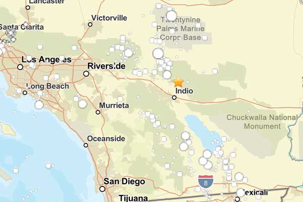 리버사이드 카운티 인디오 북북동쪽 약 12마일 지점에서 19일 저녁 규모 4.9의 지진이 발생했으며, 리버사이드 카운티 전역에서 사람들이 진동을 느꼈다는 보고가 이어졌다.
