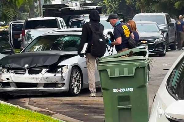 이민 단속에 사용되는 연방 요원 차량과 유사한 여러 대의 무표식 SUV도 도로 위에서 목격됐다. 또 전면부가 파손된 BMW 쿠페 차량을 조사하는 연방수사국의 모습도 포착됐다.