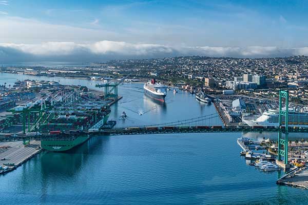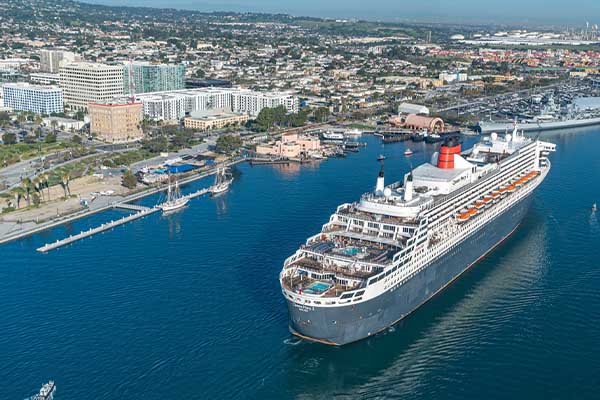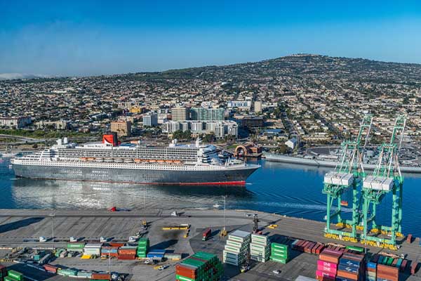 퀸 메리 2가 샌페드로 LA 항구에 들어서고 있다. West Harbor Los Angeles 페이스북