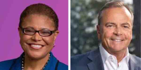 LA 시장 선거에 출마할 당시의 캐런 배스(왼쪽)와 릭 카루소.