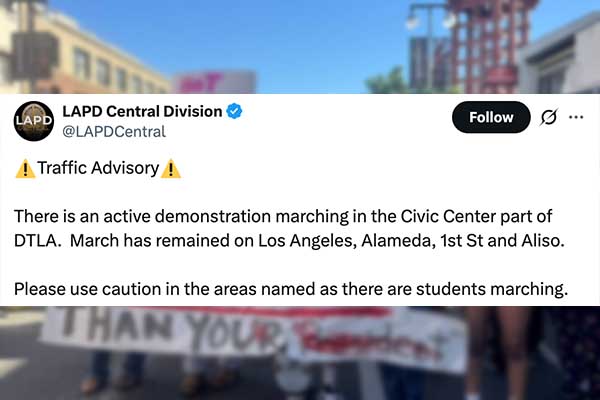 LA 경찰국은 알라메다, 1번가, 알리소 스트리트 일대 다운타운 시빅센터에서도 학생 시위가 동시에 진행됨에 따라 교통 주의보를 발령했다.