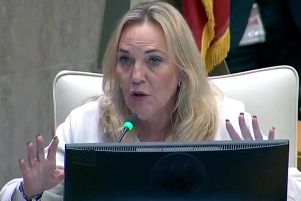 캐서린 바거 수퍼바이저가 판매세 인상에 반대 의견을 밝히고 있다. LA 카운티 수퍼바이저