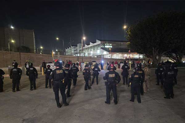 LA 경찰국은 사건에 연루된 용의자들이 다시 행진 대열 속으로 섞여 들어갔다고 전했다. 군중은 보도로 돌아가라는 명령을 거부했으며 경관들은 방어 태세를 취하며 건물 안으로 후퇴했다.