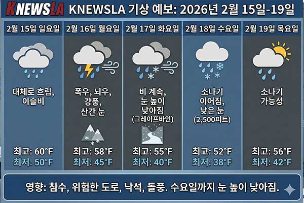 남가주 주민들은 우산을 챙기는 것이 좋겠다. 다음 주 LA 카운티에 폭우, 눈, 돌풍을 동반한 강력한 겨울 폭풍이 예상된다.
