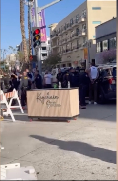 3월 1일 롱비치(Long Beach)에서 열린 닙시 허슬(Nipsey Hussle) 브랜드 ‘마라톤 버거(Marathon Burgers)’ 그랜드 오프닝 행사장 외부에서 총격이 발생해 1명이 숨지고 2명이 부상했다. 사진은 사건 직후 현장 모습. 출처 IG @Prezz_TY