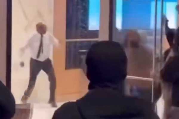 영상에 따르면 처음에는 건물 밖에 있던 이 남성이 안으로 들어가 다른 직원들이 모여 있던 로비로 물러났지만, 무리 중 일부가 건물 안으로 밀고 들어왔다. 다른 사람들은 밖에 남아 아파트 건물 정면 창문을 파손했다. 한 장면에서는 금속 바리케이드가 창문을 향해 던져지는 모습도 포착됐다.