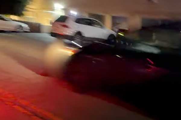 영상에는 이날 오전 12시 34분쯤 브링엄 애비뉴 고럼 애비뉴 북쪽 도로 한가운데에 남성 보행자가 앉아 있는 모습이 담겼다.