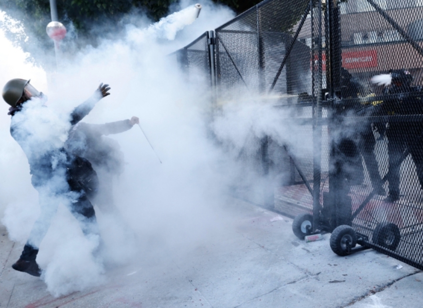 당국에 따르면 일부 시위 참가자들이 돌과 병, 콘크리트 조각 등을 경찰을 향해 던졌고, 연방 요원 2명이 시멘트 블록에 맞아 치료를 받았다.
