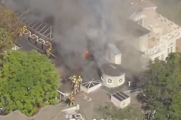 베벌리 크레스트의 한 저택에 화재가 발생해 소방대원들이 진화작업에 나서고 있다. X@KevinTakumi