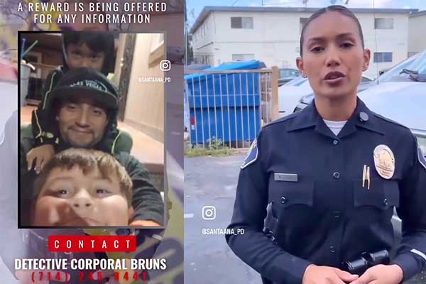산타애나 경찰이 살인사건이 발생한 아파트 쓰레기장에서 주민들의 제보를 당부하고 있다. 살해당한 거슨 라메리즈 페레즈(오른쪽부터). 산타애나 경찰