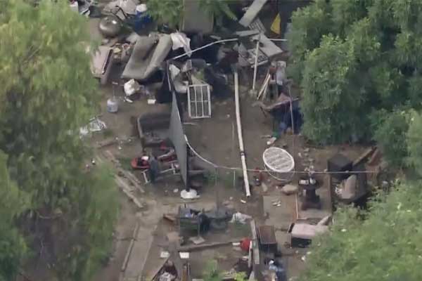노스 헐리우드의 방치된 부지에서 노숙자들이 마약을 하고 있다. KTLA 화면 캡쳐