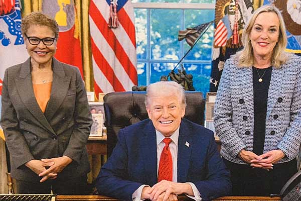 캐런 배스 LA 시장과 캐서린 바거 LA 카운티 수퍼바이저가 22일 백악관에서 도널드 트럼프 대통령 및 행정부 관계자들과 비공개 회동을 갖고, 2025년 대형 산불 피해 복구를 위한 연방 지원과 미지급 복구 자금 문제를 논의했다.