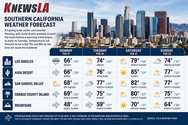 남가주는 이번 주 초 선선하고 흐린 날씨로 시작하지만, 점차 기온이 오를 것으로 전망된다.