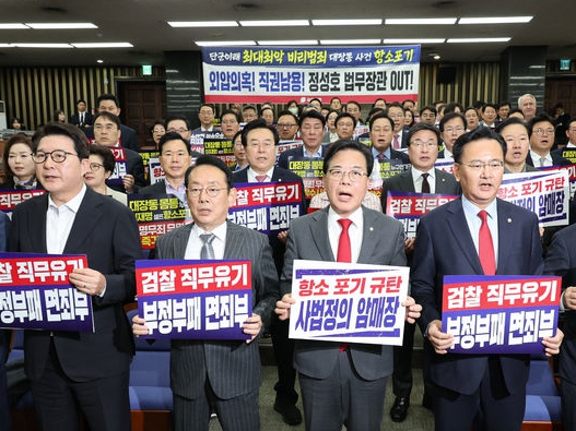 국민의힘 의원들은 10일 검찰의 대장동 개발 비리 사건 재판 항소 포기를 “사법 체계 파괴”로 보고 정성호 법무부 장관과 노만석 검찰총장 직무대행 대검 차장검사가 즉각 사퇴해야 한다고 의견을 모았다.